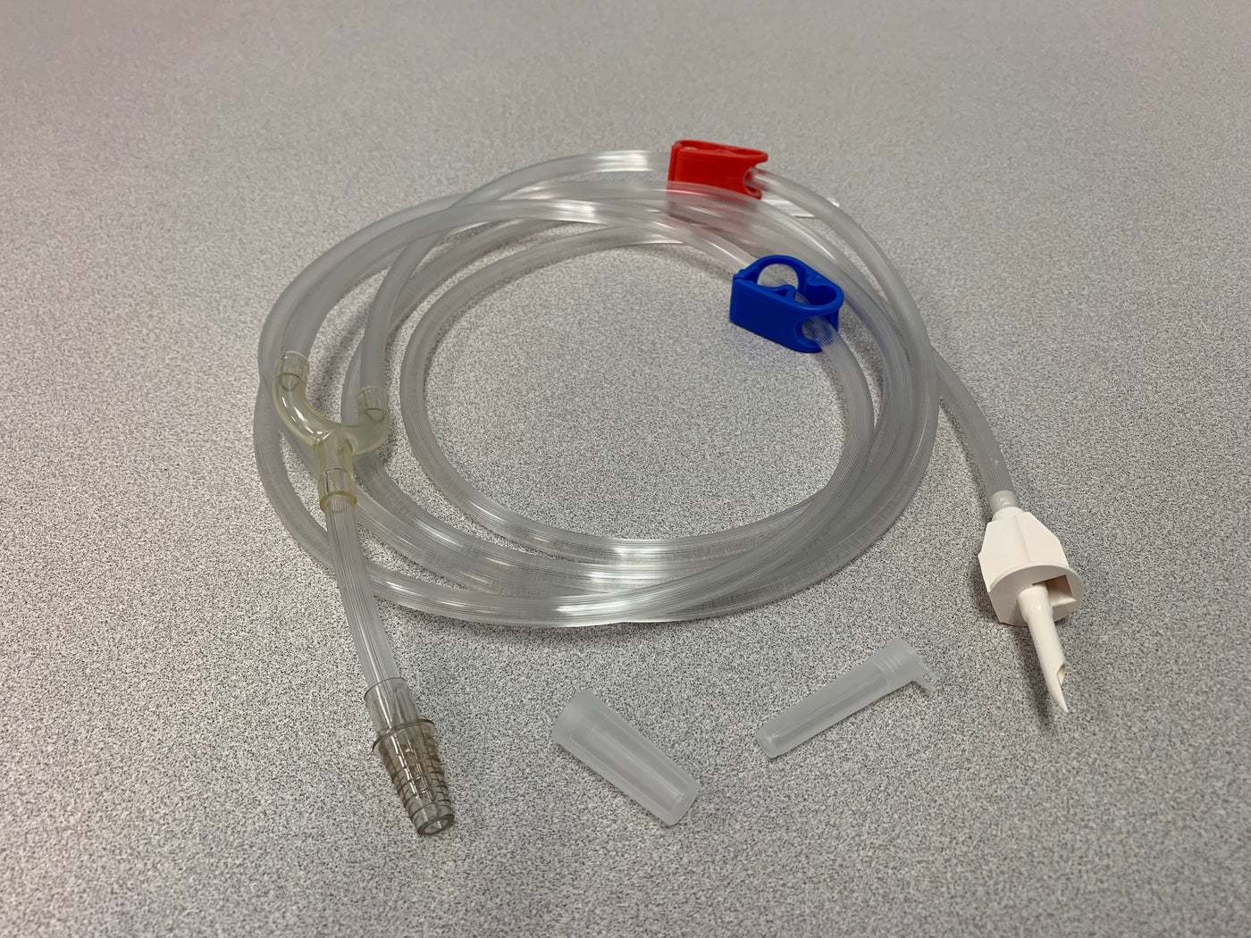 Y型管的尖端适配插入1升和2升冲胚液袋。尖端紧贴在1升或2升冲胚液袋流出口。大推板有利于更好地抓握,并容易推入冲胚液袋的流出口。